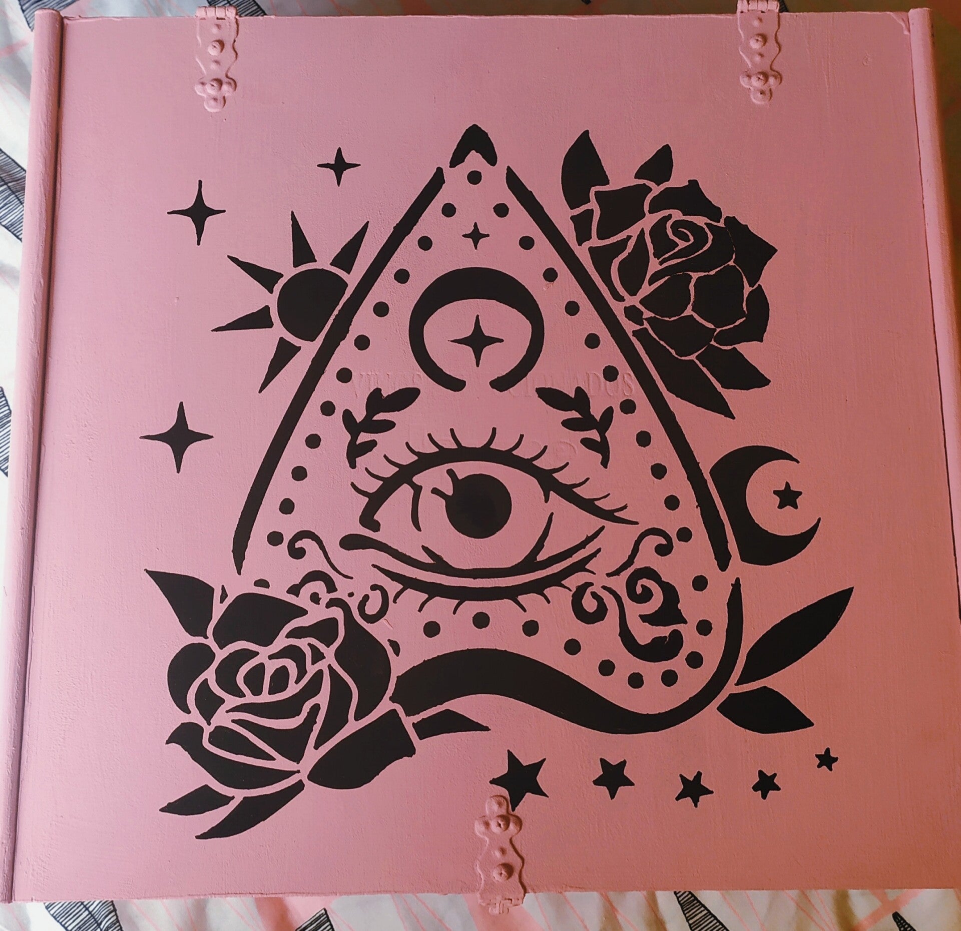 Color rosa tiza y dibujo en negro. Acrílicos al agua + barniz